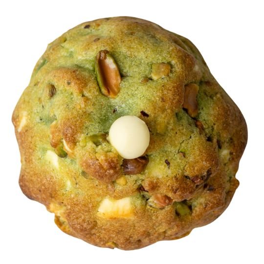 Massa com pistachio picado, pedaços de chocolate branco e ganache de pistachio – 120gr